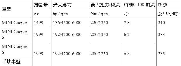全新Mini Cooper S手排車型優先入主價格  153萬 (限量引進)