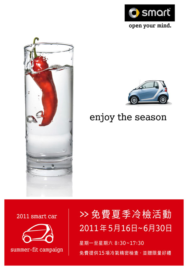 Mercedes-Benz、smart【2011夏日冷檢活動】詳情,歡迎洽詢授權服務廠,或來電台灣賓士Mercedes-Benz客戶服務專線:08000-365-24及台灣賓士smart客戶服務專線:0800-365-666,讓愛車清涼度炎夏。