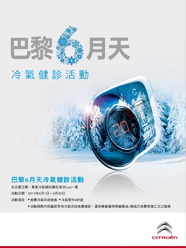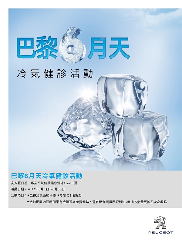 夏天的腳步近了,Peugeot/Citroen服務總代理寶嘉聯合將於6月1日至6月30日展開巴黎6月天冷氣健診服務活動。