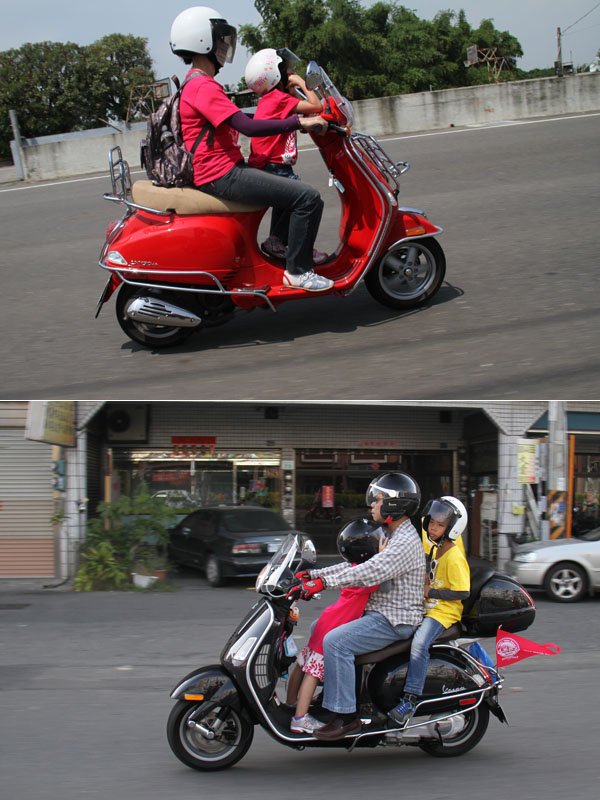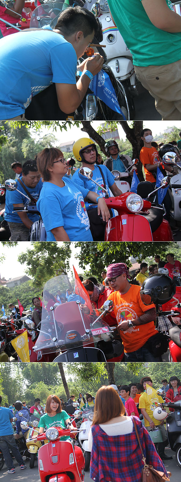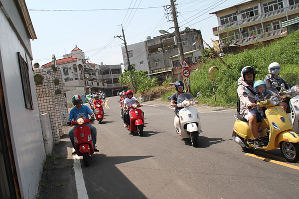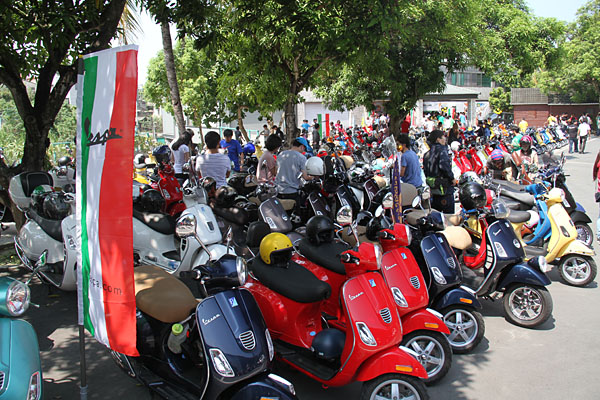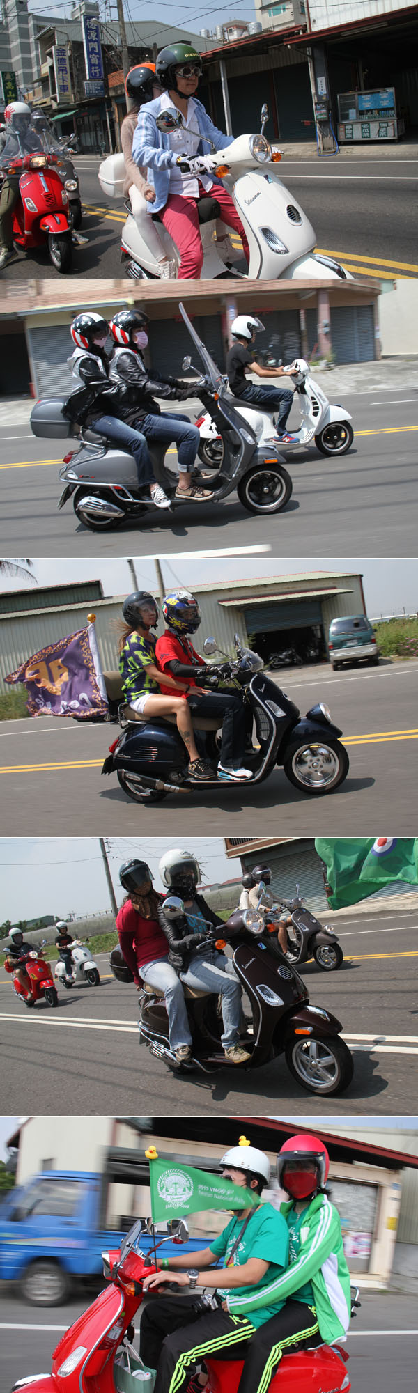 在前導車的帶領下,數百輛Vespa謹遵秩序的接連前進,有帥氣的單人騎士、有濃情蜜意的情侶搭檔、有全家出動的親子共乘、也有偕同好友的死忠夥伴;不分S系列、LX系列或是GTV與GTS車型,騎乘著Vespa共同出遊,臉上總是掛著滿滿自信笑容,更不斷的獲得來自路旁的欽羨眼光,與來自重機騎士的大拇指肯定。