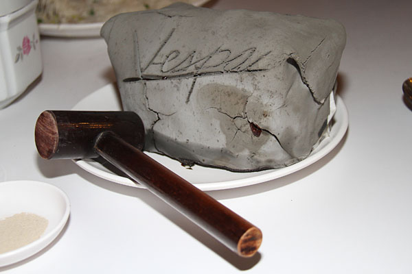 安排的菜色中有著寫上Vespa字樣的泥漿雞,相當特別。