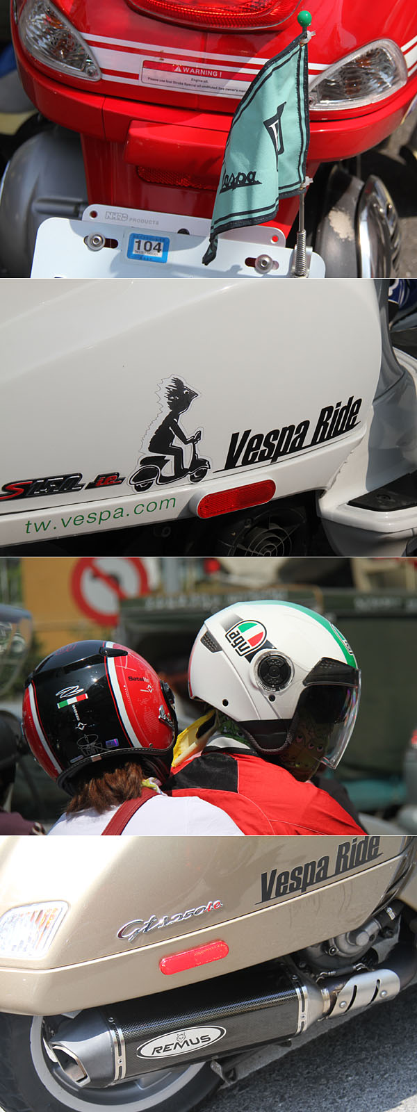 從安全帽、貼紙與改裝套件,都是當天增豔Vespa車隊不可缺少的必備要素。
