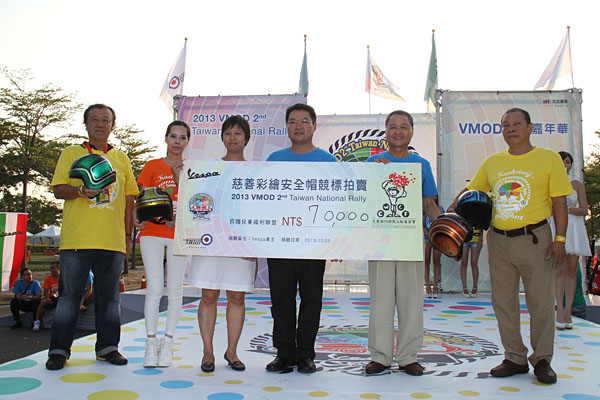 緊接著,活動五行之一的慈善義賣,則以高雄知名彩繪大師所操刀設計的五頂安全帽為主,現場公布了最終得標的車主,也將此募得的善款全數捐贈給兒童福利聯盟。