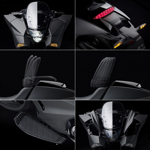 Honda NM4 Vultus頭尾燈組皆採用LED光源技術,可翻摺的後座椅墊在單人騎乘時,也能夠當做背靠使用,而擱腳的大型踏板、與車頭兩側的手套箱等,都是NM4 Vultus專屬的舒適配備。