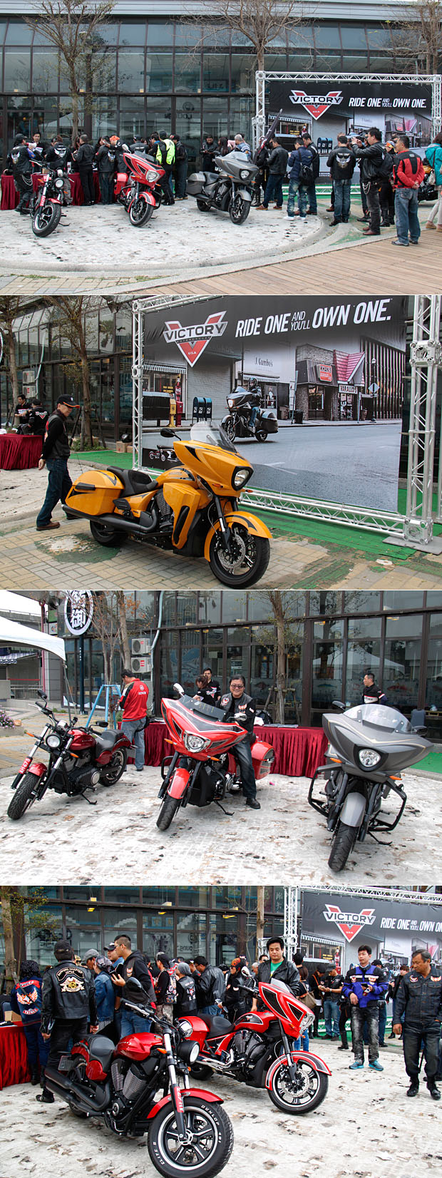選擇在台中市哈魚碼頭舉辦的台灣美式重型機車推廣協會成立大會,當天除了來自北中南共達八百輛美式機車齊聚一堂外,身為美式機車品牌總代理的海德生貿易,更全程贊助並展出身為美式機車始祖的Indian印地安重型機車,與連續七年蟬聯J.D. Power北美重型摩托車用戶騎乘滿意度第一名的Victory勝利重機到場相挺,兩經典美式重機品牌不僅於現場擺放新車展示,也舉辦了Facebook打卡贈禮的互動遊戲,更因此吸引諸多車友到場賞車,欣賞與分享對於美式機車的熱愛。