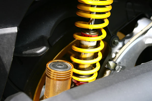 無段可調氮氣雙後避震乃是Tigra 150 2014限定式樣版的標準配備,可讓車主依照自身需求調整避震性能強弱。