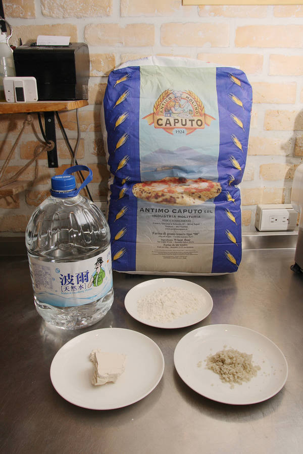 PIZZERIA OGGIC採用與國際高級餐廳、頂級披薩專賣店看齊的APUTO專業披薩麵粉、天然海鹽、新鮮酵母與PH值6-7天然礦泉水,攪拌成餅皮製作所需的麵團。
