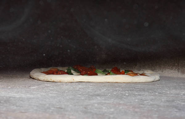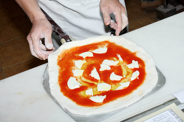 傳統拿坡里披薩準備送進義大利傳統石頭窯爐現烤。