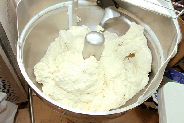 義大利麵粉攪拌機正在攪拌麵團。