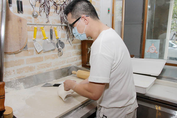 露出真面目的PIZZERIA OGGI主廚吳國華,介紹拿坡里披薩的特色。