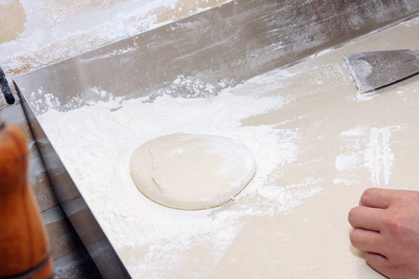 準備製成餅皮的熟成麵團。