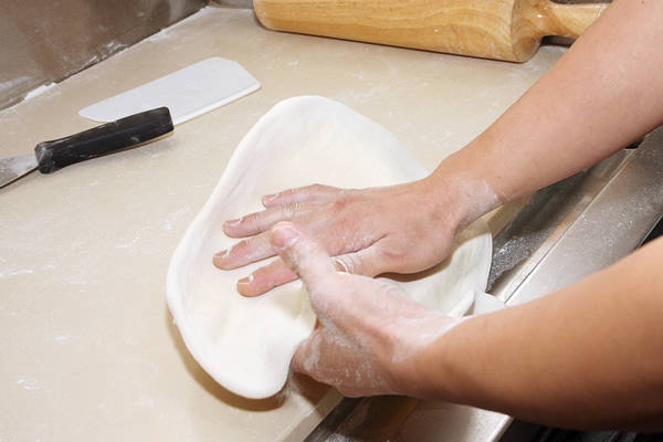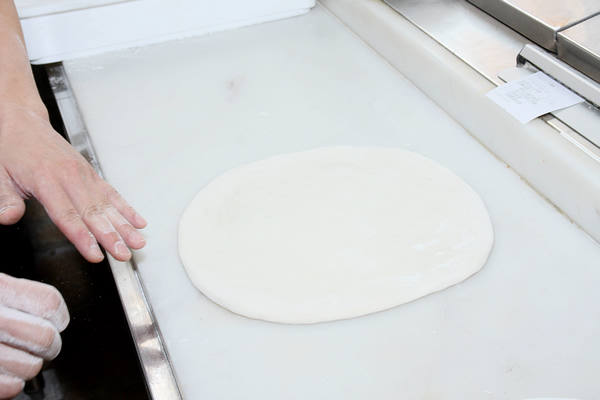 麵團準備好之後,披薩製作就從雙手甩成餅皮開始。