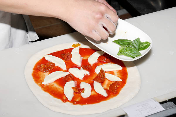 傳統拿坡里披薩準備上桌。