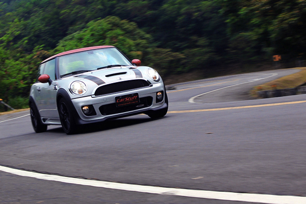 於是乎,駕駛Mini John Cooper Works在五指山漫遊,那種好玩耍的性格,無時無刻不敦促你需更積極對待油門踏板與方向盤,Mini短到幾乎讓人忘卻轉向不足的軸距,造就的是活靈活現彷彿雙腳般好使喚的循跡反應,方向盤怎麼轉,車頭就往指的方向走,沒有絲毫懷疑不說,還補給你一具活潑好動的後軸,可惜的是在這樣棒的動力與底盤調性下,足下配置的205/40 R17馬牌CSC3頂級跑胎卻已經顯得跟不上腳步,「胎再黏一點該有多好啊!」在山道試駕的過程中,筆者確實好幾次不由自主地與鄰座的同事這麼發牢騷著。