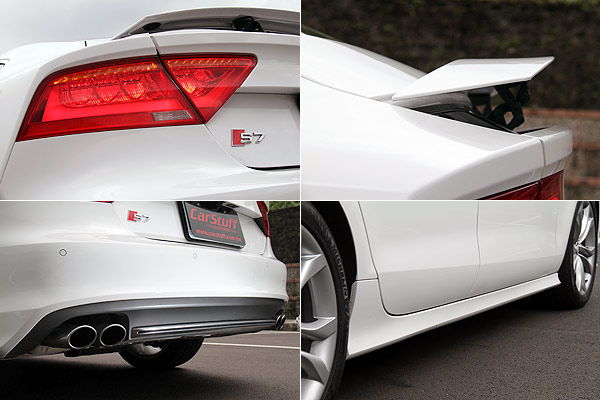 車尾同樣嵌上S7銘牌,並加裝側裙、後保桿空力套件與4出圓形鍍鉻尾管等套件。同時,能夠自動升起的電動尾翼也被保留下來。