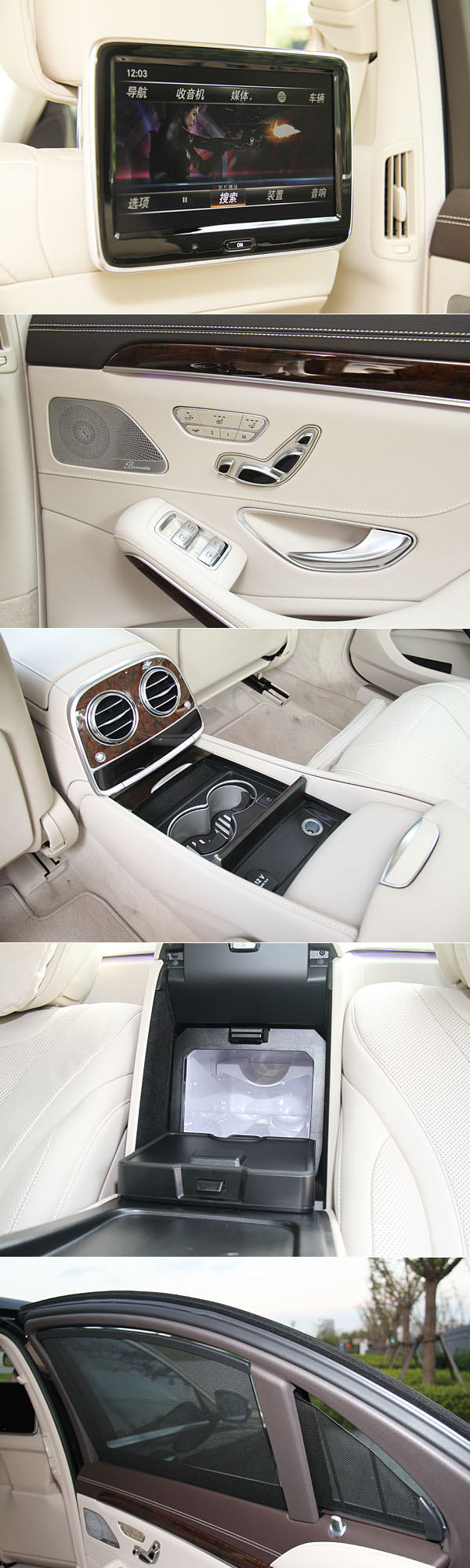 後座可選配的套件琳瑯滿目,包含有10吋LCD螢幕的後座娛樂套件、提供溫度控制杯架的獨立後座套件、後座遮陽套件等,加上後座中央的冷藏冰箱,讓後座的享受程度提升到空前的極致等級。