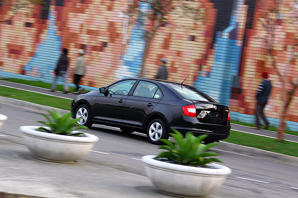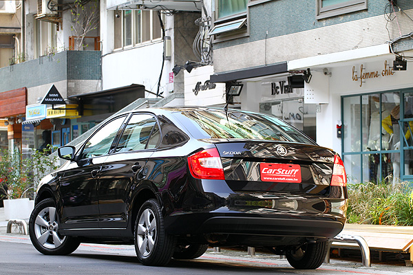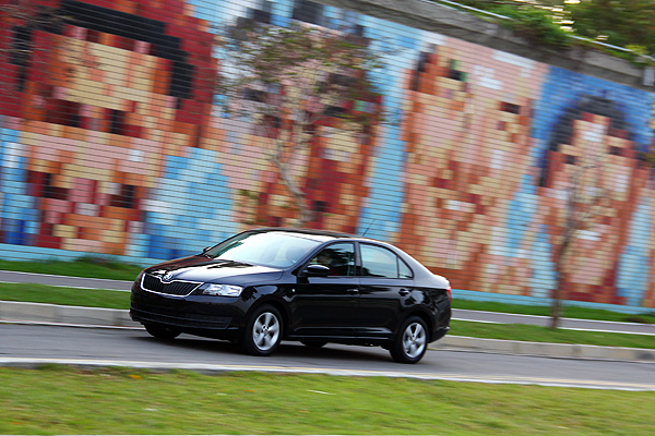 在小型家庭房車的設定下,Rapid不僅有著充足的引擎力度,整體的駕馭感受也一如Volkswagen集團或是Škoda家族向來給人的沉穩印象,雖然定位在小型家庭房車的他仍然採用偏向舒適性的調校,紮實的回饋讓輕巧的Rapid能夠給予駕駛安心的感受。輔助力道適中又不失精準的轉向手感,也與這樣的車格相互匹配。不過,標配尺寸185/60 R15的圈胎組合,在速度較快時總不安份的發出鳴叫,抓地力也稍嫌不足,是實際駕馭上較為明顯的弱勢。
