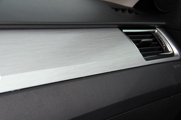 這片從駕駛作延伸至手套箱上方的髮絲紋路金屬飾板搭配壓花細緻的塑料表面,為充滿硬質塑料的Rapid車室帶來不俗的質感。