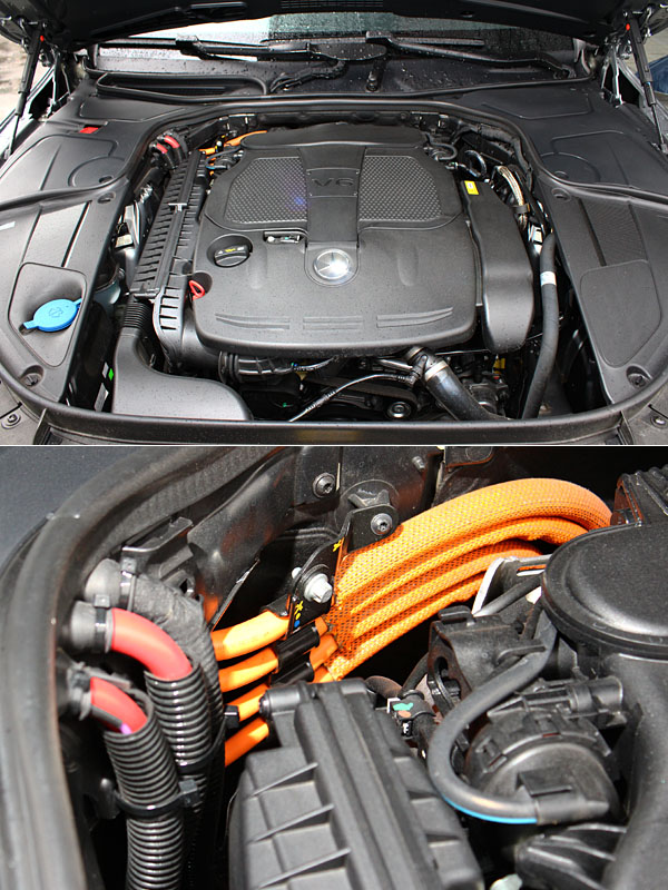 S 400 L Hybrid搭載的動力系統中,其中引擎部分搭載原廠代號M276的3498c.c. V6引擎,最大馬力為306hp/6500rpm,峰值扭力則為370Nm/3500-5250rpm。引擎室中橘紅色的線路代表Hybrid系統中的高壓電路,以顏色區分增加維修操作時的安全。