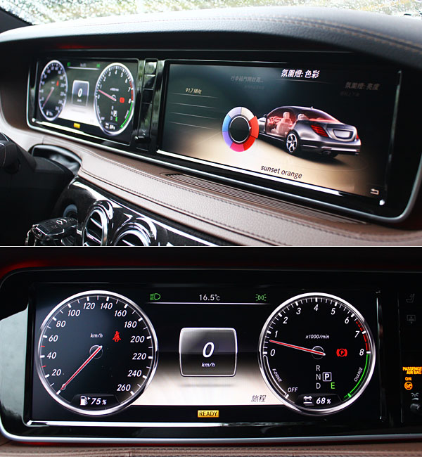 座艙格局與S 500 L大抵相同,主要差異在飾板配色的選擇變化。