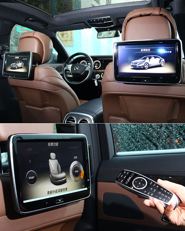 由於選配了後座娛樂套件,因此增加了雙10吋LCD螢幕與DVD播放系統,可透過遙控器操作。