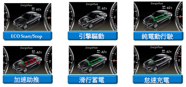 Hybrid系統提供的多種模式,並會呈現於儀表與中控台的12.3吋螢幕中,供駕駛或乘客了解。
