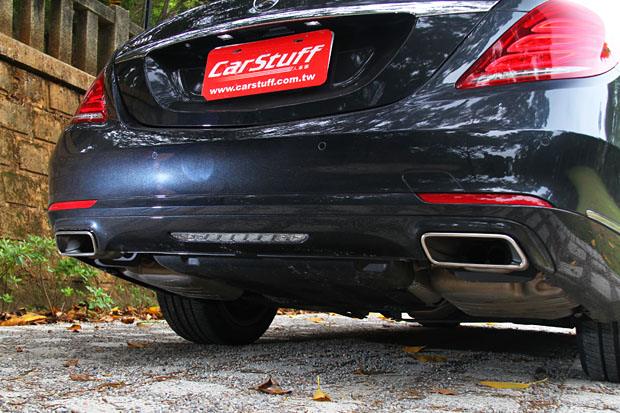 採用矩形設計的輸出式排氣尾管,成為此世代S-Class的特色設計。