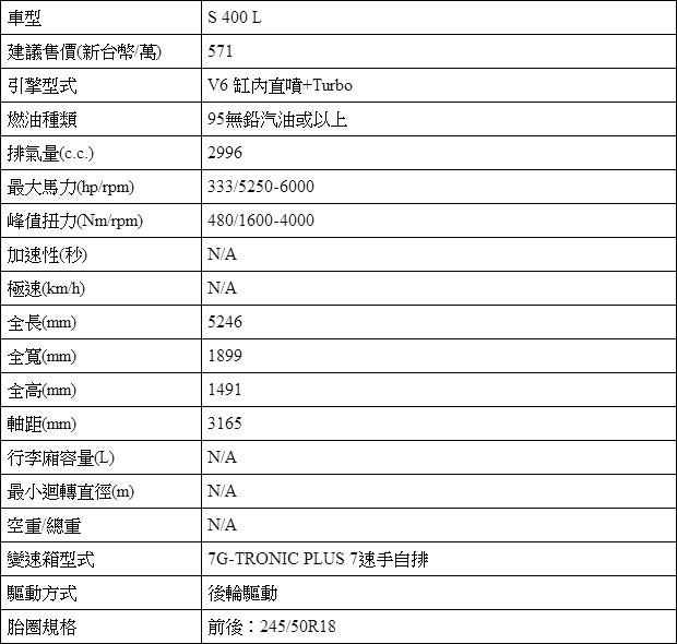 身為此世代S-Class車系中的二當家,S 400 L車價為新台幣571萬元,足足較S 500 L的752萬少了181萬之多。
