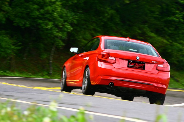 而從內湖上山的過程中,便可以清楚知道與原本心中所預期的果然八九不離十,甚至這輛220i還給予我們更多的驚嘆。首先這輛車一開快就可以知悉它依然保有過往BMW良好的前後配重,這讓車在彎中絲毫不會發生任何預料外的蠢動,然後後輪驅動先天優勢開始得以拓展,將車拋入彎頂點除了靠油門深淺決定車尾外帶的幅度,就只剩要不要讓電子循跡控制系統限制住你奔放的心情。