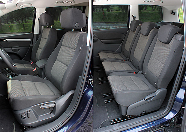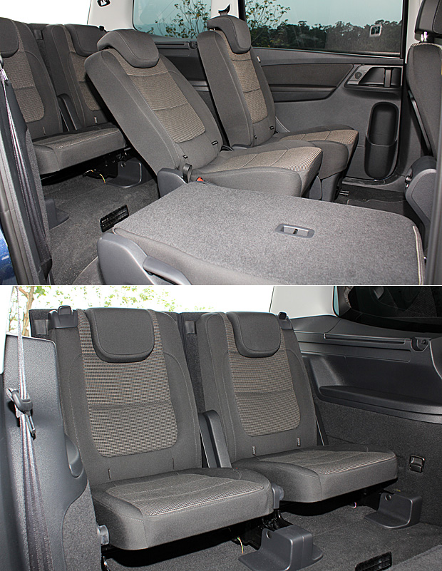 眼前的Sharan 1.4 TSI TL車型,車內採用2-3-2的三排7人座設定,Volkswagen為3張獨立的第二排座椅採用椅背角度與椅面前後可調的設計,讓第二排的乘客可以依照自身的需要,調整座椅的位置與椅背角度。同時,也為第三排的乘客提供更具彈性的膝部空間。但,即使不刻意調整第二排的椅面與椅背位置,保持在適中的狀態下,身高約177公分的筆者在第三排座椅上,膝部與第二排椅背仍有約四分之三拳頭的距離,頭部也未接觸頂篷。同時,第二排的乘客也還留有足以翹腳的腿部空間,寬敞的乘坐空間可見一斑。