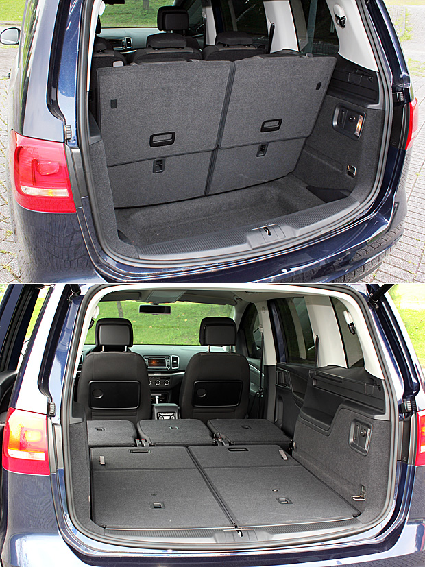 Sharan可以提供330公升的基礎行裡箱容積,後座椅全數打平則可以擴充至2297公升,而且還有相當平整的行李箱底板。
