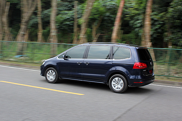 由於定位在家庭使用與人員乘坐,Sharan的下盤調校仍以舒適為主,偏軟的設定與較長的懸吊行程,對於路面的坑洞與不平都能有效地被吸收,傳至車室之中,換得的是安穩且舒適的行路質感。就後座乘客的角度而言,Sharan的表現可以說是可圈可點,與其充裕的三排乘坐空間搭配下,即使是長途移動也不會是種負擔。