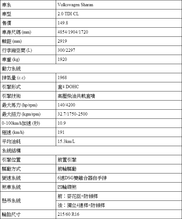 以動力任主力─Volkswagen Sharan 2.0 TDI CL