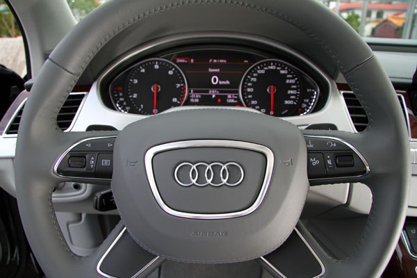 A8所配置的電子式排檔桿設計概念源自遊艇的動力控制桿,且採線傳控制方式,操作手感與傳統卡榫式排檔機構有所不同。
