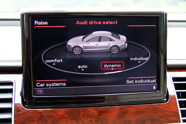 Audi drive select可程式車身動態系統,同樣是由MMI介面調整,具有comfort〈舒適〉、auto〈自動〉、dynamic〈運動〉與individual〈車主自訂〉四種模式。