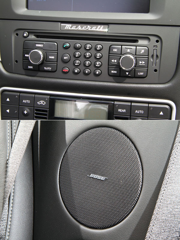 Maserati與Bose連手開發的高音質音響系統,配備12個音響單體,一個位於儀表中央、兩個車門各配置兩個高音單體與兩個低音單體、前座下方配置一具重低音揚聲器、左右後視版各配置兩個高音單體兩個低音單體,後方並配置一雙低音單體的重低音揚聲器。