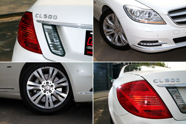 而本次試駕的CL 500 BLUEEFFICIENCY為原廠代號W216之小改款車型,在外觀部分同樣融入了Mercedes-Benz最新的家族設計語彙,全新V字型引擎進氣壩,兩側銳角化造型頭燈設計,增加了車頭造型的立體感,氣勢也更勝以往,同時也加入了LED日間行車燈點綴,以呼應時代流行,車尾部分,類似古典豪華房車的下切設計,與由前輪拱向後切劃而來的腰線相連結,將側面與車後造型修飾地富有動感氣息,同時對於龐大地車身尺碼有修飾作用,讓它有著如同利刃般的躍進感。