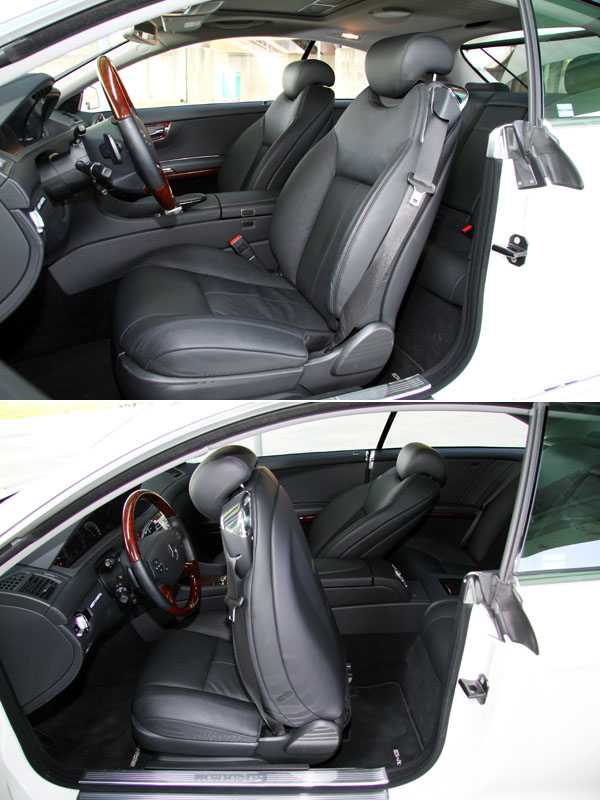 在試駕當天,我先將駕駛權交給同梯次試駕的另一位媒體朋友,想座進後座,感受一下這雙門跑車在這樣的尺碼下,後座空間是不是也有過人之處,首先當筆者欲進入後座時,發現CL 500 BlueEFFICIENCY拜長車身尺碼所賜,車門開啟幅度相當大,而且在無窗框、無B柱設計與前座椅背具電動前傾功能下,可以輕易地騰出寬闊的進入空間,即使還是得低頭縮腳地進入車室,不過以雙門車的標準來說,CL 500 BlueEFFICIENCY的進入便利性絕對也是有大哥級的表現。