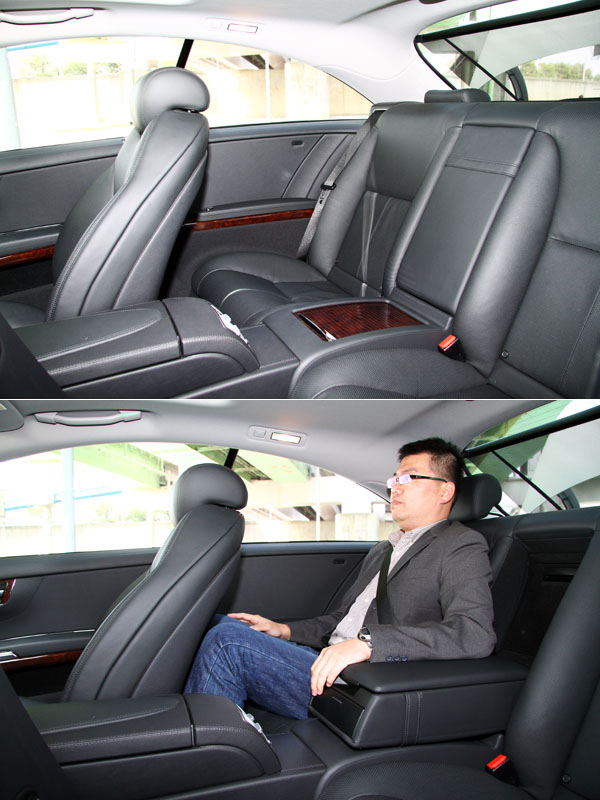 而當我坐進後座後,除了縱向空間不下於E-Class外,採左右獨立雙座的設計,使其擁有更緊貼的包覆性,軟硬適中的皮革與泡棉,超優異的乘坐感,讓我在車內直呼:「好好坐、好舒服」,雖然這樣的反應很庸俗,但是卻很直接的闡述出它的後坐舒適性,我甚至覺得它的後座舒適性勝過於E-Class,不愧為旗艦級車款,若是將中央扶手放下,將手肘靠於兩側的扶手上,舒服的閉上眼,一點也感覺不到自己是坐在一輛雙門跑車的後座中。