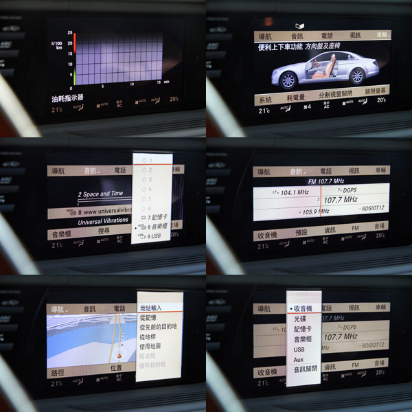 CL-Class也搭載了最新的Split View多重視窗功能,當該功能開啟後,可針對前座左右兩位使用者使用隻系統做分別顯示。 而COMAND系統,具有大型中央旋鈕控制DVD影音系統、藍芽通訊系統、USB/SD卡插槽等功能。