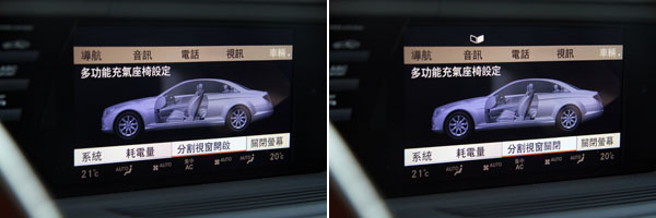 小改CL-Class除了原本的象形座椅調整介面外,也將按摩等功能整合於COMAND系統中,並且共有四段按摩強度可調整。
