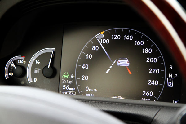 Distronic Plus新一代定速車距裝置則可於行車速度在0-200 km/h範圍內,只要輕觸按鍵,定速車距裝置可協助車輛與前車保持一定距離。雷達感應器常時監控前車距離與相對速度,系統會管制駕駛行車速度,必要時會干預煞車。此套件也包括煞車輔助系統,緊急煞車時,可縮短煞車距離。