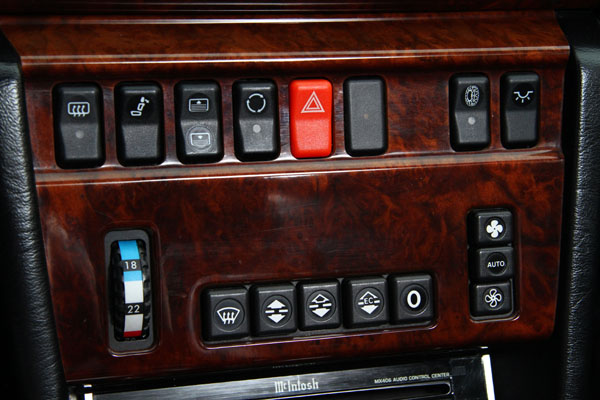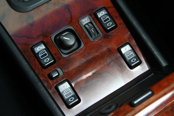 位居中央的電動窗按鍵,為當時Mercedes-Benz標準的設計之一。