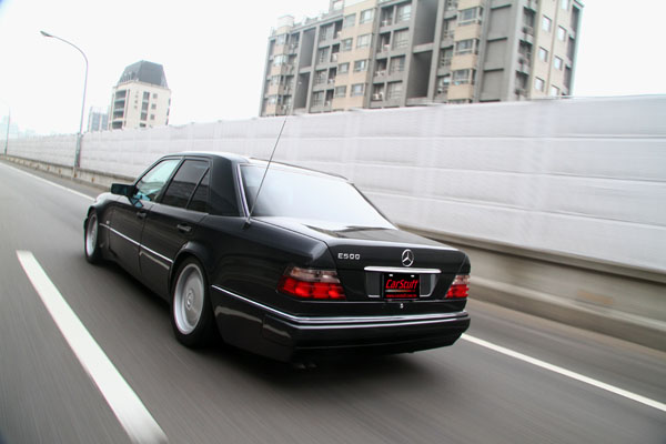 探究W124世代,其中高性能家族中,除了相當稀有、1993-1994年間生產的E60 AMG之外,第二把交椅,莫過於是500E/E500之高性能V8車型了,會有500E與E500之車名差異,主要是因為1991年問世時,當時W124命名法則延續過去原則,直至1993年生產1994年式車型時,W124車系更名為〝E-Class〞,因此在小改款的過程中,也同步的換上E500之車名,而此次試駕車款為1994年式樣,因此車尾上的車名銘牌,也就順理成章的為〝E500〞了。