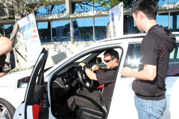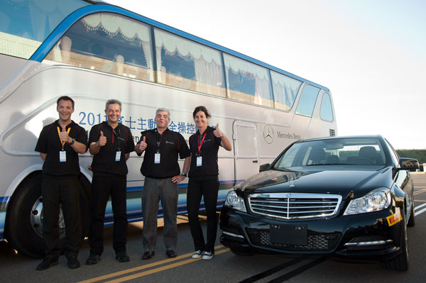 台灣賓士邀請德國原廠專業教練來台與台灣賓士售後服務副總裁史安德先生(右二)於試駕活動合影。