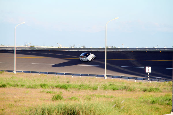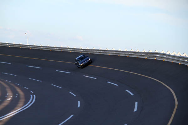 當車速達到160km/h以上,車輛就會因離心力順勢攀至跑道最上側。