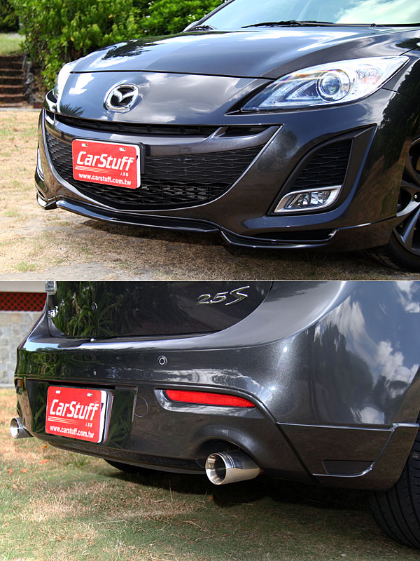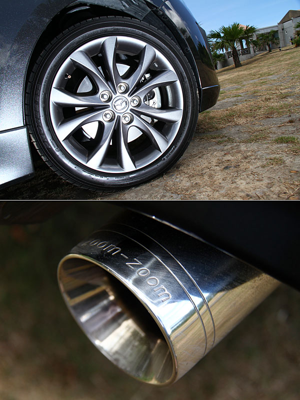 2.5S車型除了既有的17吋鋁合金鎗色輪圈外,搭配Zoom-Zoom排氣尾飾管,運動氣勢更為上乘。