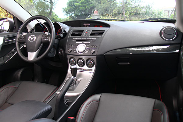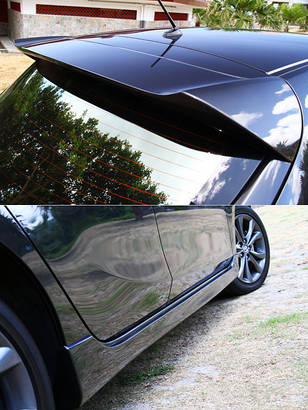 一如往常,此次Mazda3特仕車型的包裝,也以內外兼具的方式進行,外觀上加裝前後下擾流,內裝部分則除了入門的Mazda3 1.6L車型並無具備紅黑雙色跑車座椅外,皆載入了賽車化踏板、Zoom-Zoom排檔桿、類碳纖維門窗與中控台飾板、專屬紅色滾邊腳踏墊與紅黑雙色跑車座椅等專屬配備。