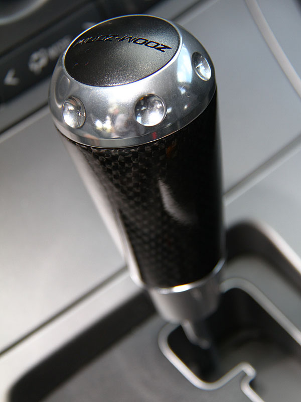 造型特殊、下方配有類碳纖維表面的排檔桿。
