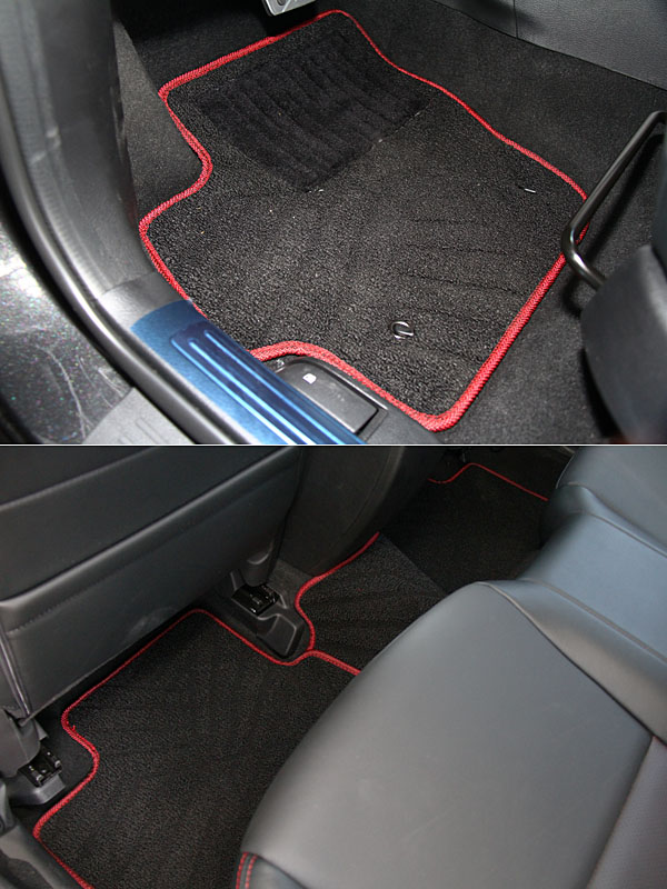 鑲有紅色滾邊的專屬腳踏墊。